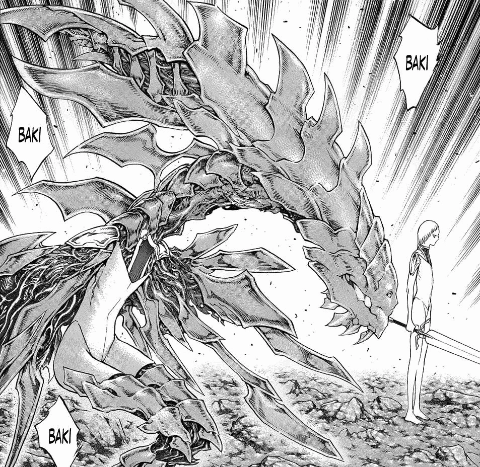 En las rocosas tierras del este donde se encuentra la organización, una gran cantidad de guerreras se encuentran tiradas tras ser derrotadas por una guerrera. Miria quien entro en la organización y derroto a las guerreras, la espada de Audrey la apunta ya con un gran cansancio, Tras la retaguardia de Miria, Rachel la ataca con su técnica la Espada Fuerte pero esta la atraviesa y junto con el ataque de Audrey, no fue suficiente para detenerla siendo ellas atacadas por Miria. Una decepción por parte de los hombres de negros quienes ven a las actuales guerreras de un dígito siendo derribadas, pero Rubel quien también era espectador, decide felicitarla por las actitudes que tiene Miria en la pelea y por mostrar su considerable diferencia de poder, Rubel piensa que ha pesar de que las numero uno y dos no están, hace que las numero tres y cinco fueran insignificante, preparada para matar y acabar a la organización, de convertirse en alguien con tanto poder se convertiría en una pena estando tan cerca. Miria se percata de dos pequeñas niñas con sus Claymore (espada), Miria se da cuenta que son gemelas y ve con asombro que una de ellas se transformo en un Despertar, una criatura con un cráneo alargado con el rostro en la frente y sin parte de la mandíbula inferior, brazos que dan varias cuchillas y conservando su traje de color blanco. Rubel comenta que aquellas gemelas todavía no se les da un número pero son consideradas las sucesoras de Alicia y Beth, la Despertar se enfrenta a Miria atacando con sus brazos pero esta logra esquivarlo saltando, la Despertar logra un ataque casi confundible a la que Miria, es cuando la otra gemela salta detrás de ella cambiando a Despertar y logra atacar pero Miria logra traspasar el ataque desde el aire logrando que la gemela Despertada choque contra el suelo, las gemelas vuelven a la normalidad y se deciden a atacar rápidamente. Rubel dice que Miria puede pelear contra ellas perfectamente como esperaba; pero la carta triunfal de la Organización no eran ellas.