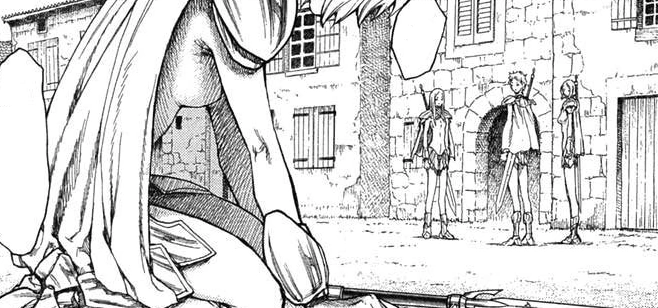En un pueblo lleno de Yomas, dos guerreras los asesinan, una de ellas le pregunta a la otra que era aquel pueblo en el que estaban exactamente, la otra le responde que supone que es un nido de Yomas, un pueblo ordinario que fue infestado por Yomas, disfrazados de personas y matando a todo aquel humano que pasara, las dos guerreras se muestran, la que había preguntado tenía el cabello corto y le pregunta de nuevo cuántos había matado llamándola Sophia, su compañera tenía un rostro mas sereno y de pelo corto ondulado, le responde que con el que había matado serian siete hasta el momento llamándola Noel. Noel le hace notar sobre la cantidad de muertos que hay en total y que no encajaban con los que había matado, Sophia le responde que no había contado bien Noel ya que lavaba la cuenta desde el inicio, las matemáticas nunca habían sido el tema fuerte, por eso era la número cuatro, Noel le llama la atención y le dice que Sophia era la número cuatro y ella era la tres, los Yomas atacan y las dos matan a uno juntas, Noel da un giro en el aire matando a dos Yomas, Sophia quien presentaba un ligero rostro también mata a dos Yomas que se les hacercaba por detrás cortándolos frontalmente sin darse vuelta, uno de ellos se esconde detrás de un pilar, Sophia se da cuenta y corta el pilar horizontalmente con el Yoma que se encontraba escondido atrás, Noel le dice que usa la fuerza bruta como siempre igual que una gorila, Sophia sonriendo le dice que Noel usaba acrobacias como siempre al igual que un mono, Noel se molesta y Sophia le responde que ella había empezado, las dos deciden querer enfrentarse decidiendo sus números, otra guerrera aparece llamándole la atención a las dos ha que se detengan, la guerrera avanza hacia las dos y dos Yomas saltan hacia ella, pero mueren cortados en el aire, la guerrera se rostro serio y de cabello largo les dice por que están peleando la una a la otra, sus ordenes eran eliminar a los Yomas del pueblo, Noel la llama Irene, Sophia le dice a había pasado mucho tiempo, Noel le dice que ya veía el por qué la llamaban la Espada Rápida, ni siquiera la vieron sacar su espada, Sophia le hace notar que no había ninguna gota de sangre por haber matado a los Yomas en un punto ciego alejado, nadie duda que era la número dos. Ya las tres reunidas, Noel le pregunta a Irene cual era el plan, si era de deshacerse de los Yomas del pueblo, Irene la mira sin decir nada, Sophia le dice que cualquiera de ellas pudo haber hecho el trabajo sola, debía de haber una razón por la que estaban allí, Irene les dice que estaban reunidas para matar a la número uno, las ordenes eran matar a Teresa, las dos guerreras quedan sorprendidas por lo que Irene había dicho, Noel pregunta si es Teresa la de la Sonrisa débil y Sophia pregunta el por qué, Irene le dice que Teresa había matado a un grupo de bandidos, dejo la organización después de haber cortado a las guerreras que fueron enviadas para castigarlas, Noel se muestra molesta y Irene agrega que el motivo por haber convocado del número dos al cinco, para cumplir la regla y usar sus fuerzas combinadas para matar a Teresa, Sophia se percata de algo, faltaba una guerrera, Noel se interesa en combinar la fuerza de las guerreras para pelear contra la número uno, pero quién era la número cinco, Sophia le dice a Noel que es realmente una idiota, es Elda, Irene les dice que no es ella, era la número dos y que recientemente ella se había convertida en la número tres, Noel y Sophia quedan impresionadas por lo dicho y Irene les dice que ellas eran ahora las número cuatro y cinco, la número dos había sido certificada hace poco y era nueva saltando al número dos en los últimos meses. Noel reclama pero Irene le dice que si tiene problemas con ello que lo discuta con la número dos, con solo una mirada fue suficiente para satisfacerse, las dos quedan en duda cuando la otra guerrera faltante aparece desplomándose por detrás, queda adolorida cuando se arrodilla,